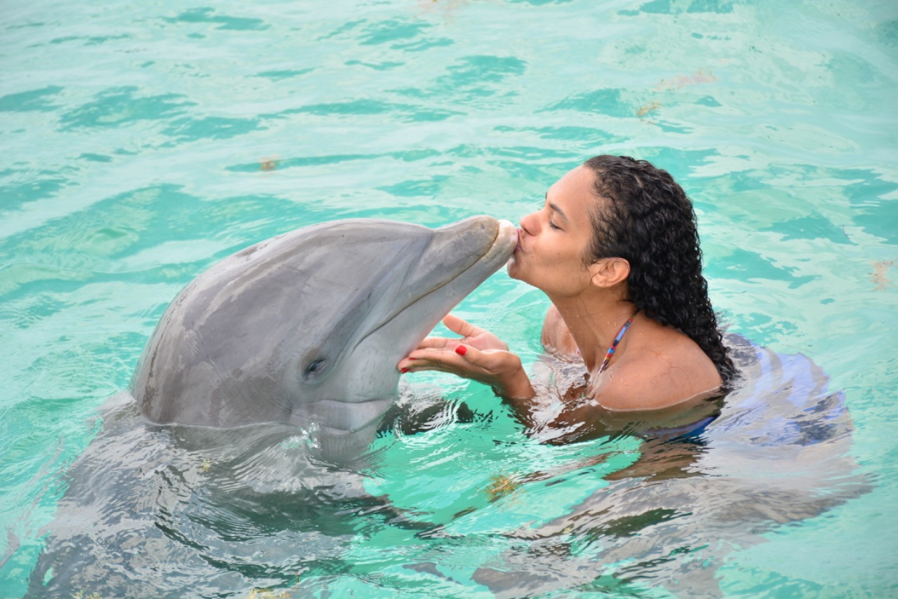 Você irá interagir com o golfinho em uma plataforma onde todos ficam de pé enquanto eles se aproximam. Irá interagir com o golfinho por 40 minutos tocando, abraçando, beijando e fazendo todas as interações guiadas: ✅ Aperto de mão ✅ Beijo e abraço ✅ Dança ✅ Orquestra ✅ Carinho na barriga