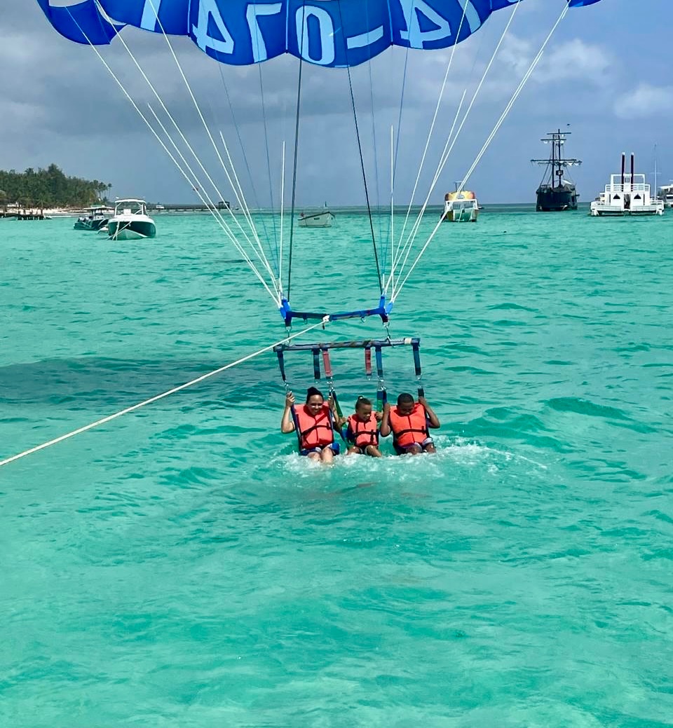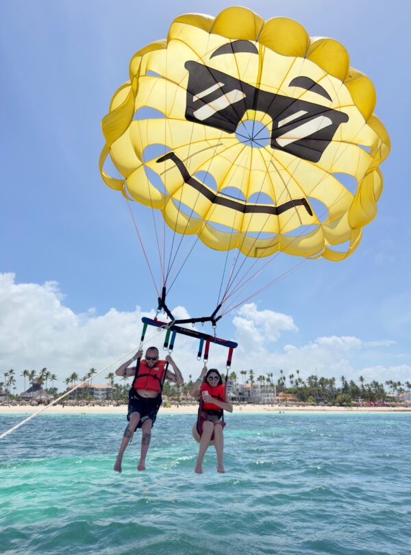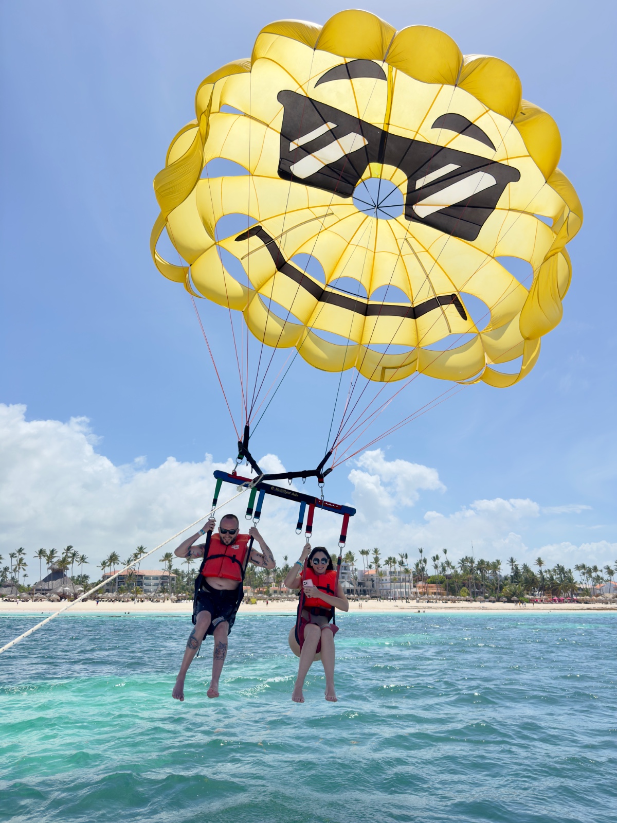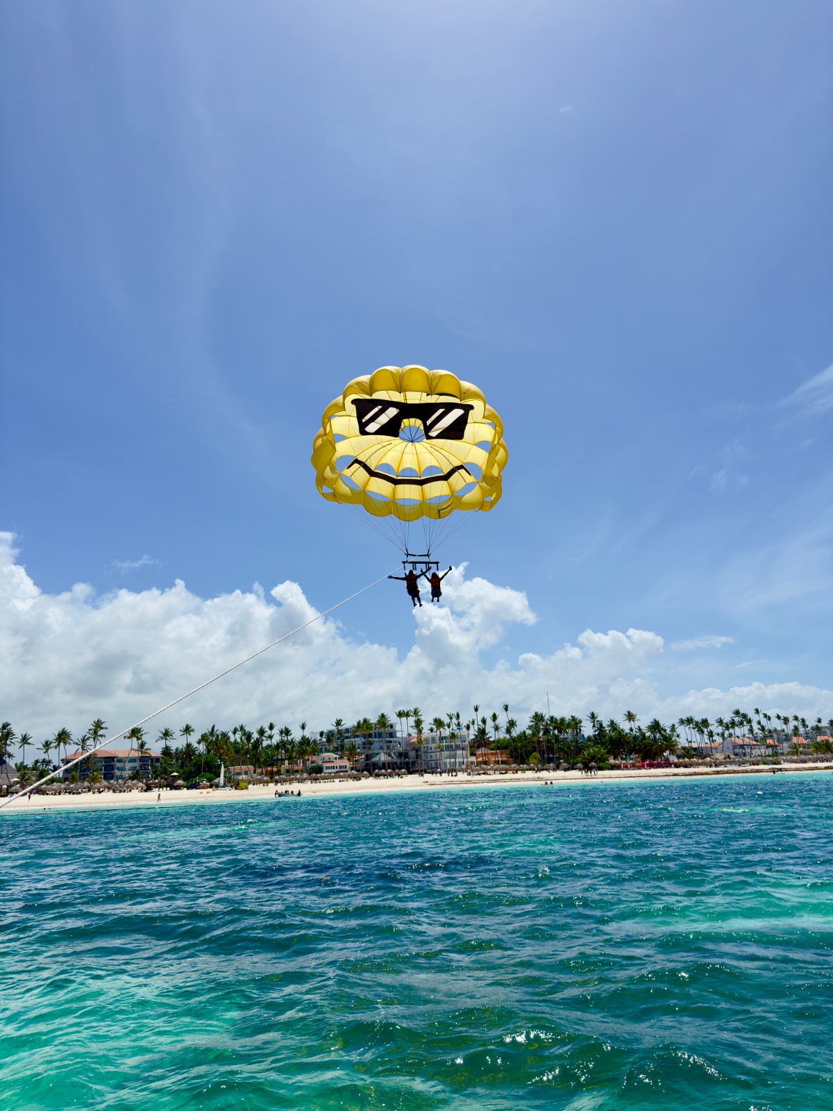 Viva a experiência única de voar sobre o mar do Caribe! No Parasailing, você será içado ao céu preso por um paraquedas enquanto uma lancha rápida o puxa pela costa de Bávaro. A vista aérea é deslumbrante, com coqueiros, resorts e águas cristalinas abaixo de você. Uma atividade emocionante, segura e inesquecível para todas as idades a partir de 6 anos.